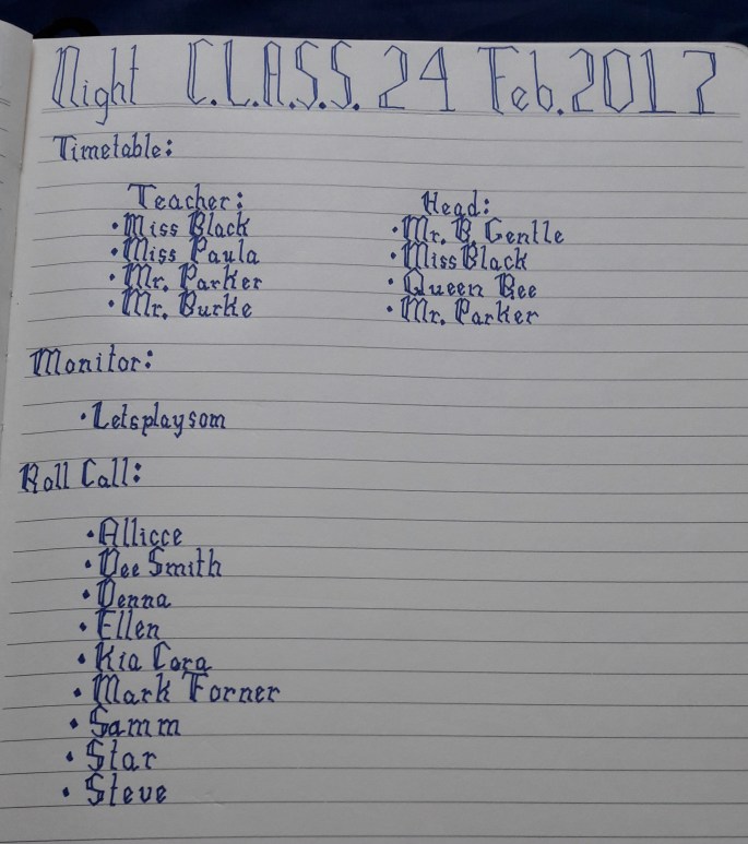 . . .not that the Head’s presence has made much of an impact on the students’ behaviour, if the school punishment log is any indication!