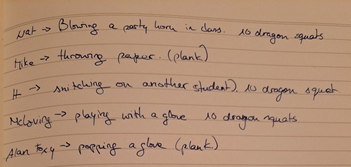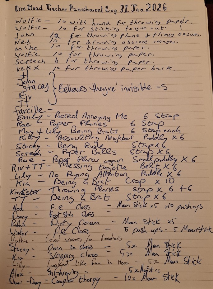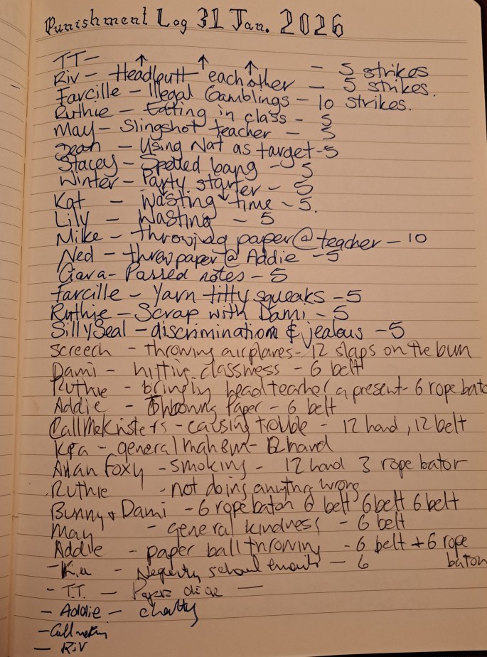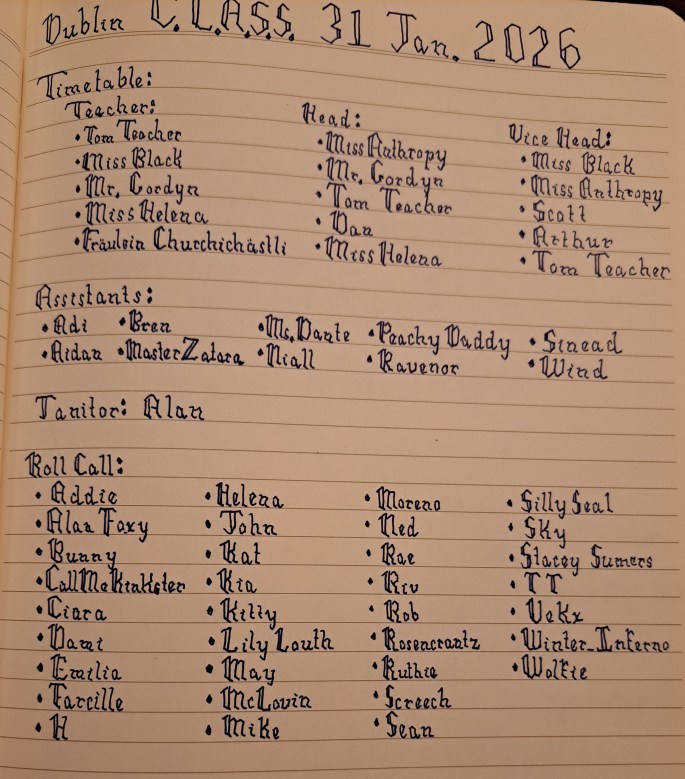 The staff sure had the students singing at Saturday’s CLASS session! And judging by the punishment logs, the students were milking opportunities to misbehave for all they were worth, and our new janitor certainly had his hands full! Might some form of order be restored when CLASS reconvenes in March? Only time will tell!